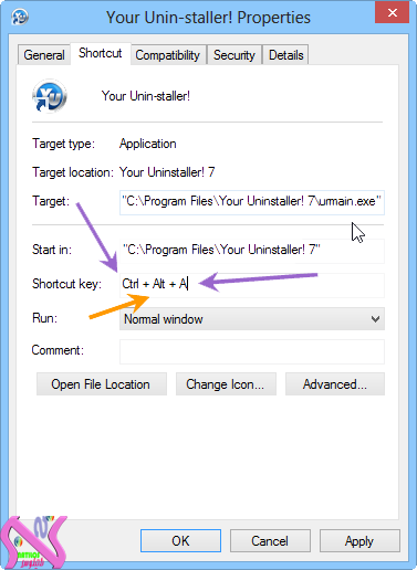 ساخت شورتکات را ديديد ولي براي ساخت يک ميانبري که بافشردن کليدهاي Ctrl+Alt+A باز شود اول بايد يک شورتکات بسازيد سپس